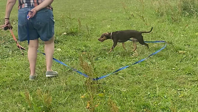 Through Anna, Brandy is starting to walk well. She sits and lies down at my command. It is now a pleasure to take her out for walks. Brandy loves it when I use the extended lead because then she is free to run and sniff further away from me. On my command and with the whistle she comes back.